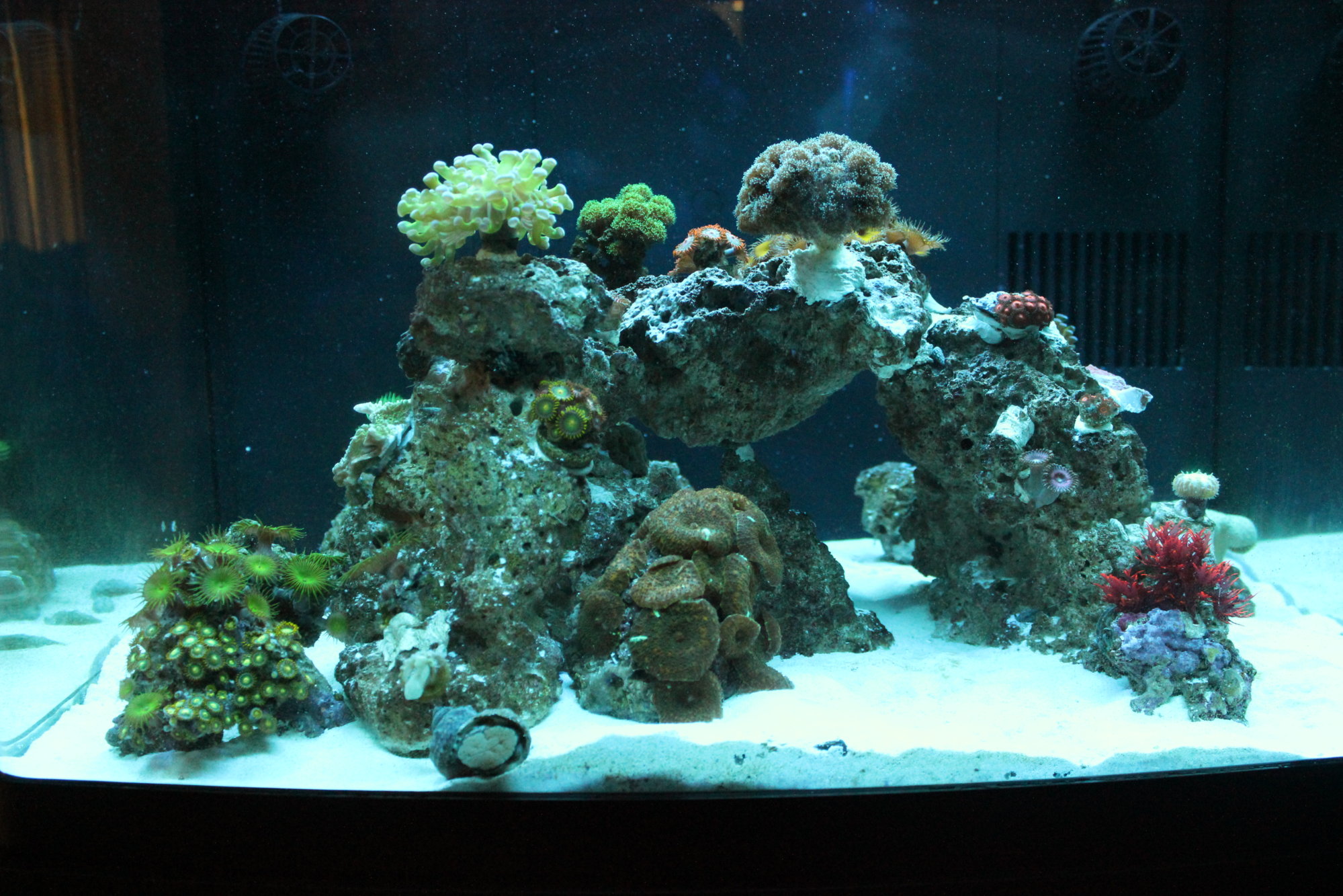 8/30/15 change over to bio marine salt and started feeding LRS food. Added a ton of snails from reef cleaners. Still waiting to see if Florida Ceriths survived. Wrasse and Blenny here on Tuesday.